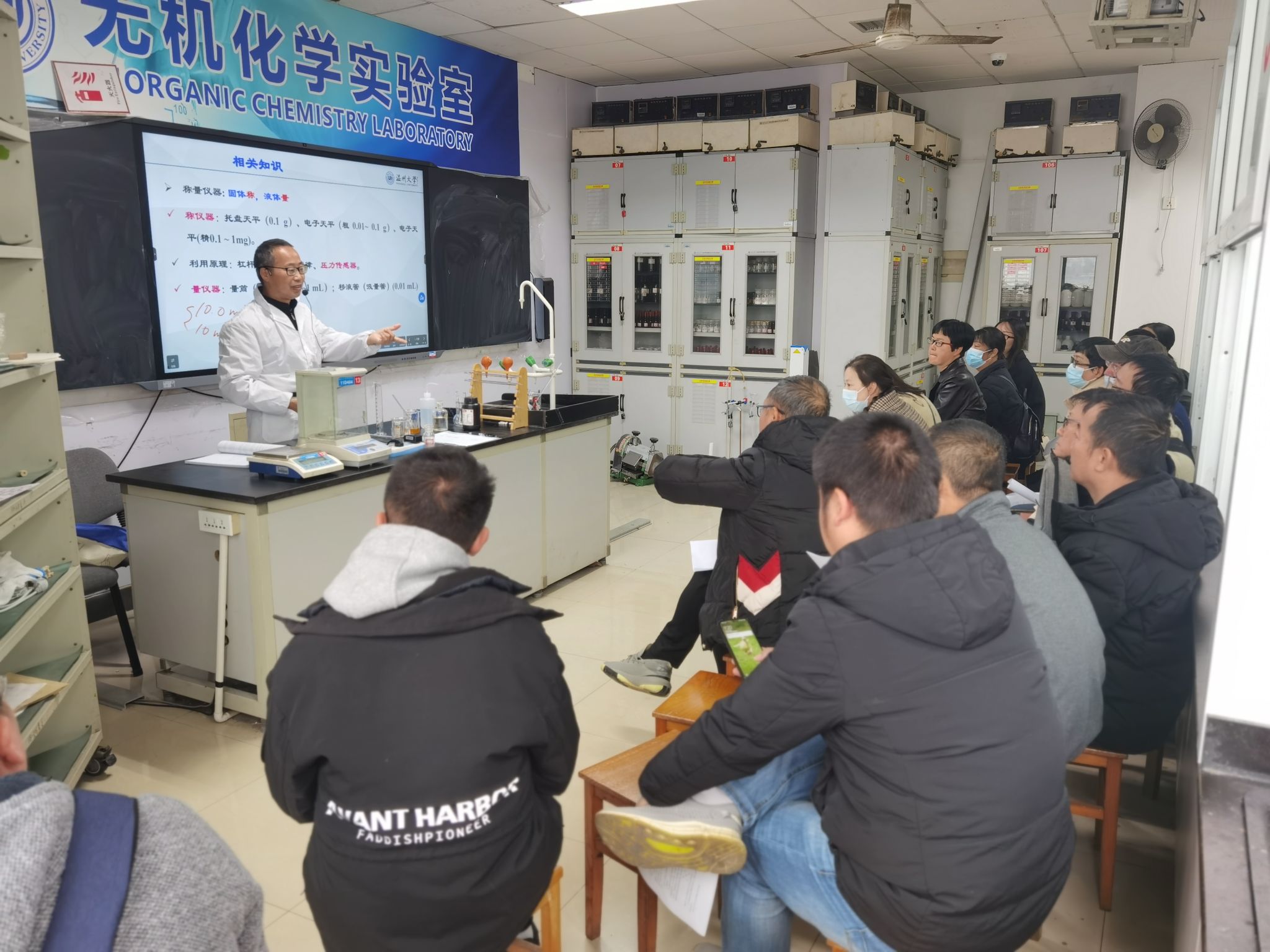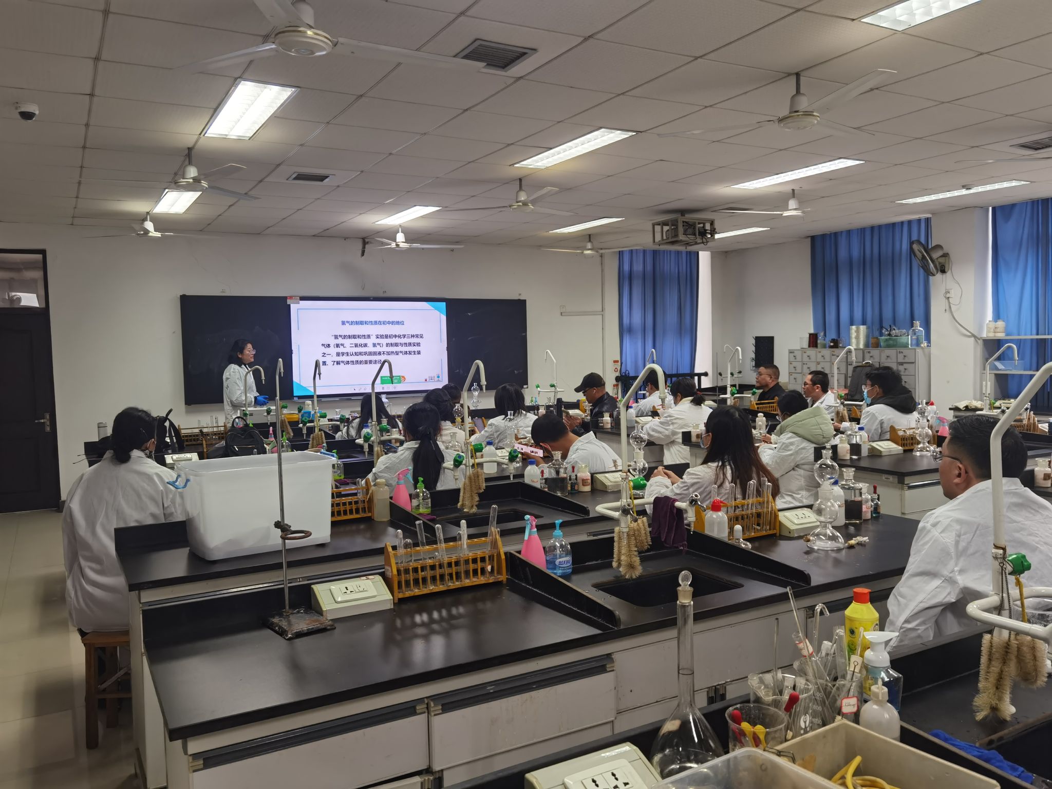 培训内容主要有理论和实践两大部分组成,主要包括危化品相关政策法规、基本知识、安全技能、责任意识;中小学化学实验安全管理;实验室建设;化学实验实践体验;创新实验等。我院邀请了陈迪妹、肖洪平、邵黎雄、张卫兵、陈素琴等资深骨干教师担任此次专项培训的老师。培训过程中,我院老师详细讲解各实验的原理、实验步骤及操作注意事项,学员们独立完成相关实验操作。