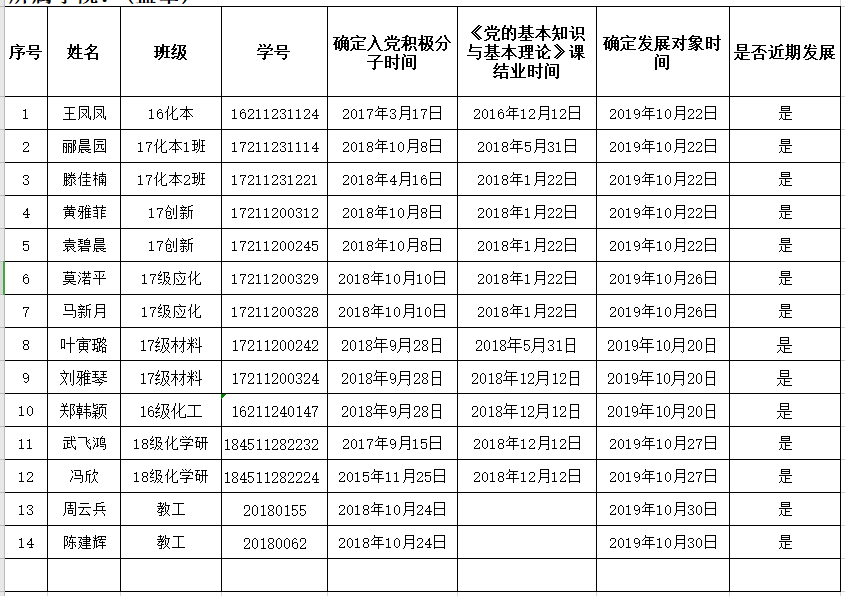 经党支部的培养教育考察,党章考试,发展对象入党答辩,并经党支部支委会审查和支部党员大会最终讨论,认为以下14名入党积极分子已基本具备党员条件,推荐为发展对象提交国产自拍